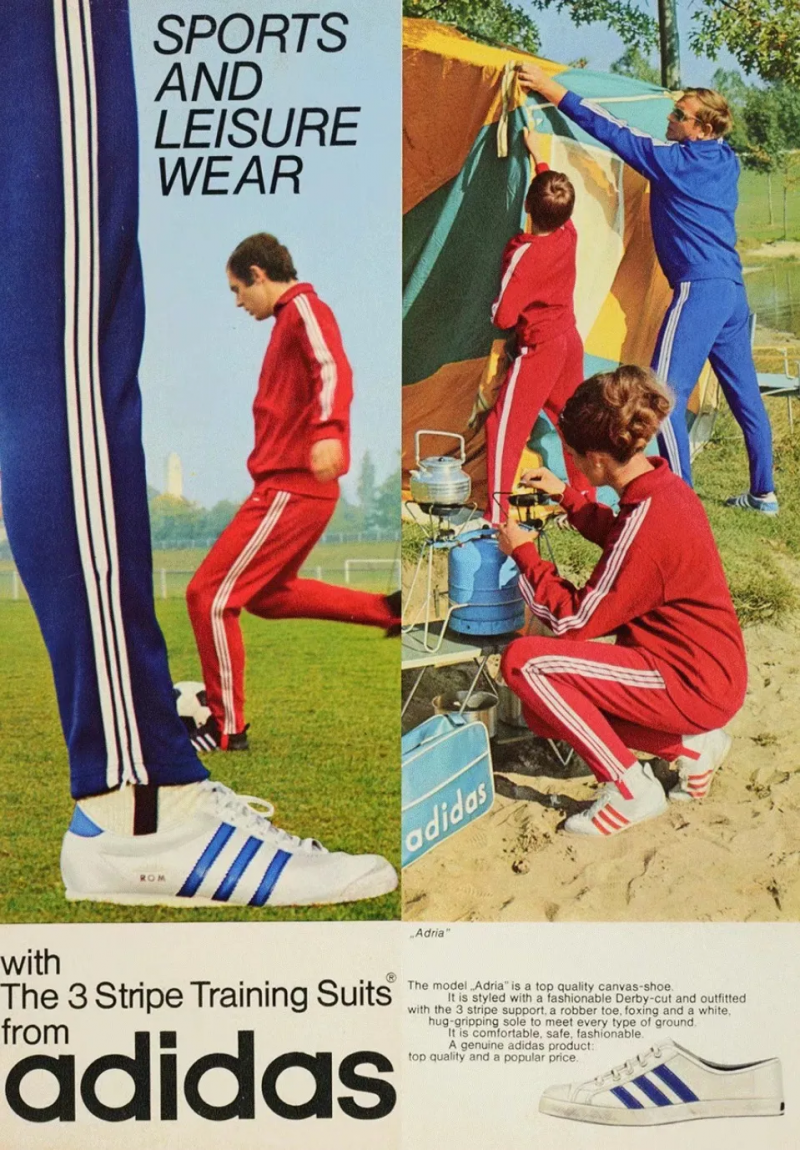1960年代到1970年代,阿迪达斯的纹活动服实现了从活动员到赛场外的风行,又赶上了1970年代的美国慢跑风潮,几乎能够说恰是阿迪达斯创制了活动休闲风。现在人们常所说的复古活动风,对阿迪达斯来说,就是回首本人的汗青。
