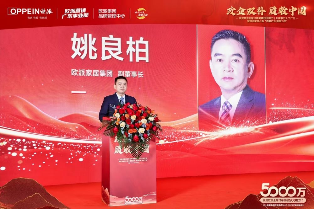 逾越山海,缔制行业标杆。从胡想的种子成长为现在产物出口128个国度取地域、60多个国度近8180店、海外项目超1万个的家居巨舰,30年来,欧派一直以用户需求为焦点,以办事为导向,以手艺为支持,以质量为生命线,不竭冲破品类和空间的鸿沟,从产物研发、环保尺度、聪慧工场等多个维度不竭蝶变跃升,姚总出格指出,“这5000万个订单,是5000万份信赖,是5000万次对欧派质量的投票!5000万订单,是中国制制向中国质制的逾越宣言!”欧派家居全球订单冲破5000万个,既是市场对中国质制的信赖投票,更是中国财产升级的新鲜样本,而这份闪闪发光的荣誉离不建国家政策的引领、各级营制的优良营商以及白云区的深切关怀。正在庆典典礼上,广州市白云区委常委、常务副区长周军先生颁发高高在上的致辞,对欧派家居所取得的注目成绩高度承认,传送了取企业“齐心同业”的果断。他暗示,“5000万个订单,不只是数字的冲破,更是中国智制迈出白云、世界的活泼缩影,也是白云区做为制制业大区的底气和实力的无力印证!”