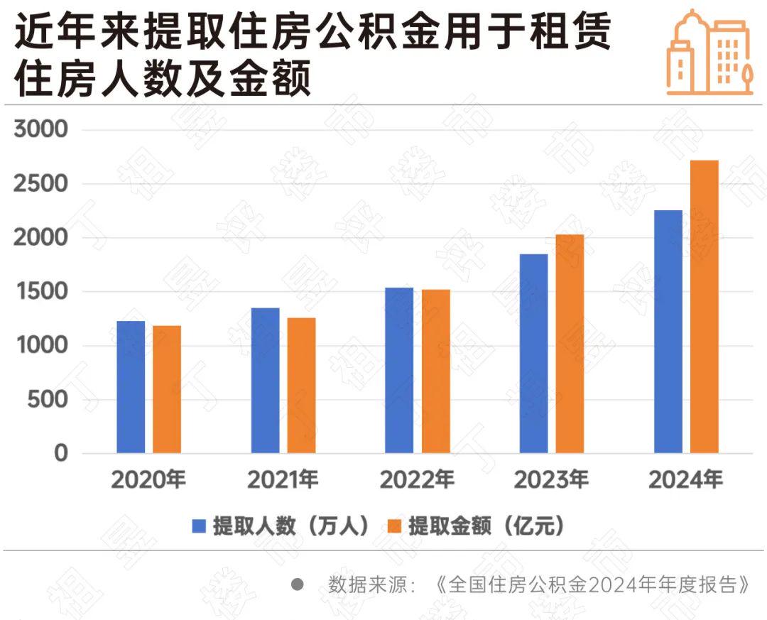 通过算数计较2024年2257。44万人提取住房公积金2720。57亿元用于租赁住房,可得平均每人每月约提取1004。3元用于租房。